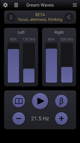 - Use the "+" and "-" buttons to set the frequency difference between your left